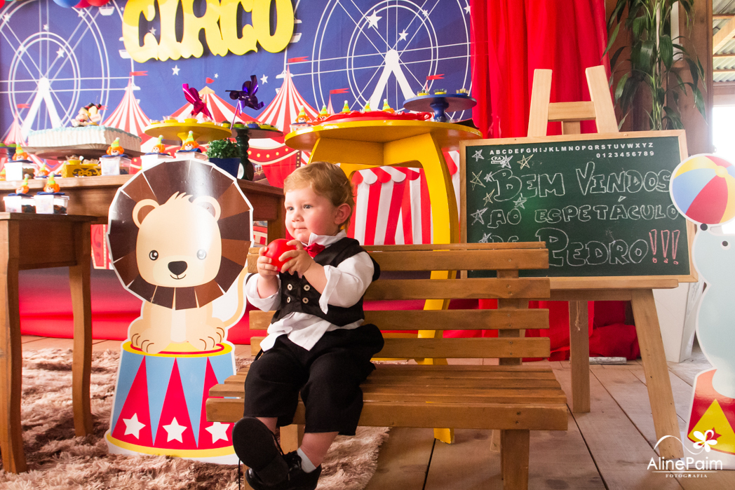 aline paim fotografia registrou o parabens da festa de 1 ano do pedro, festa tema circo, rio negrinho