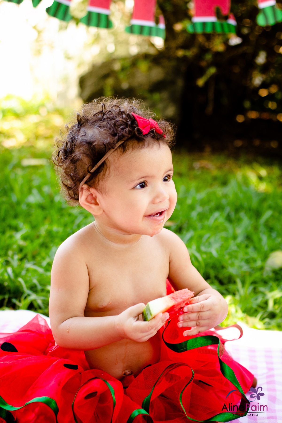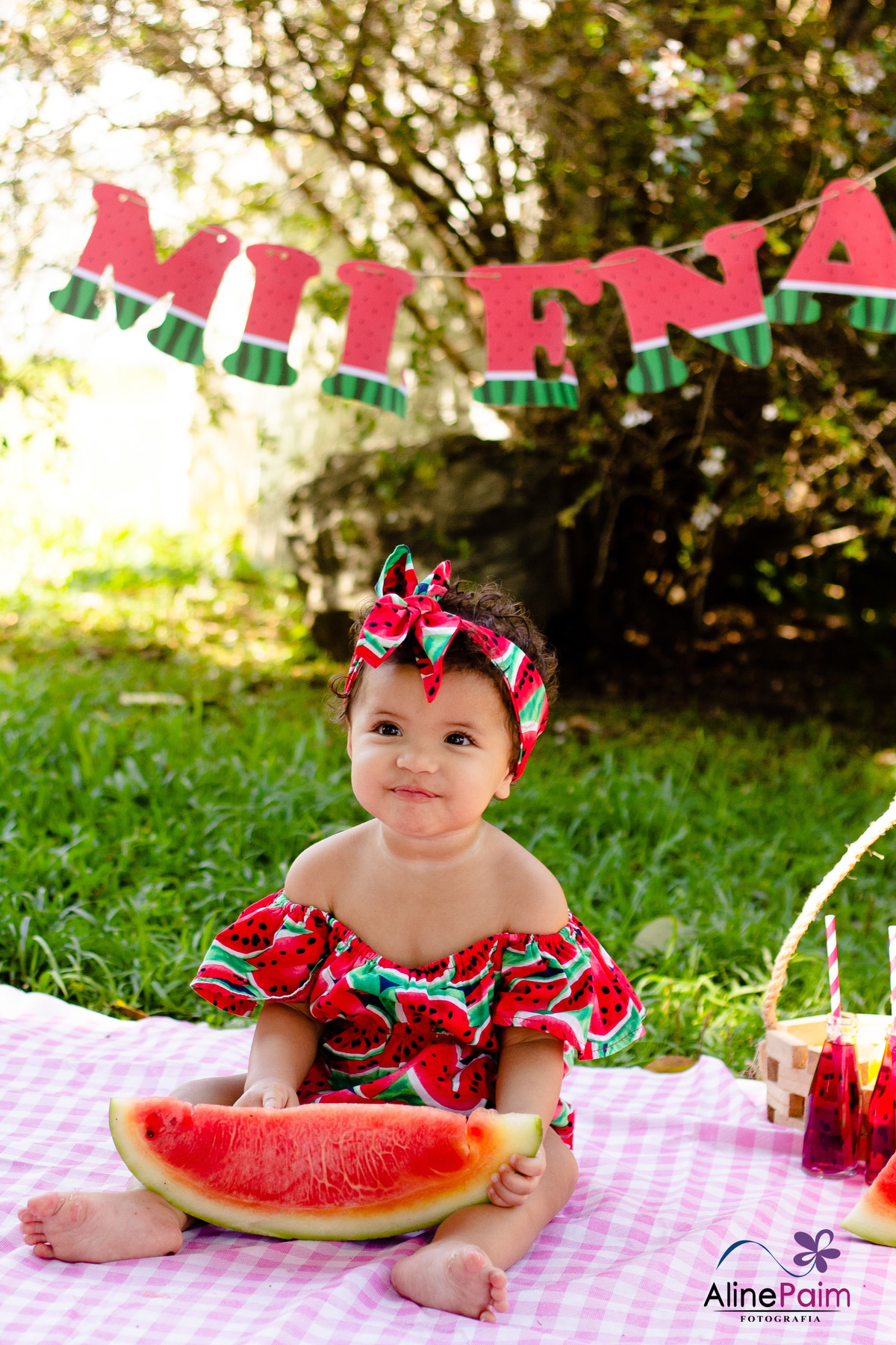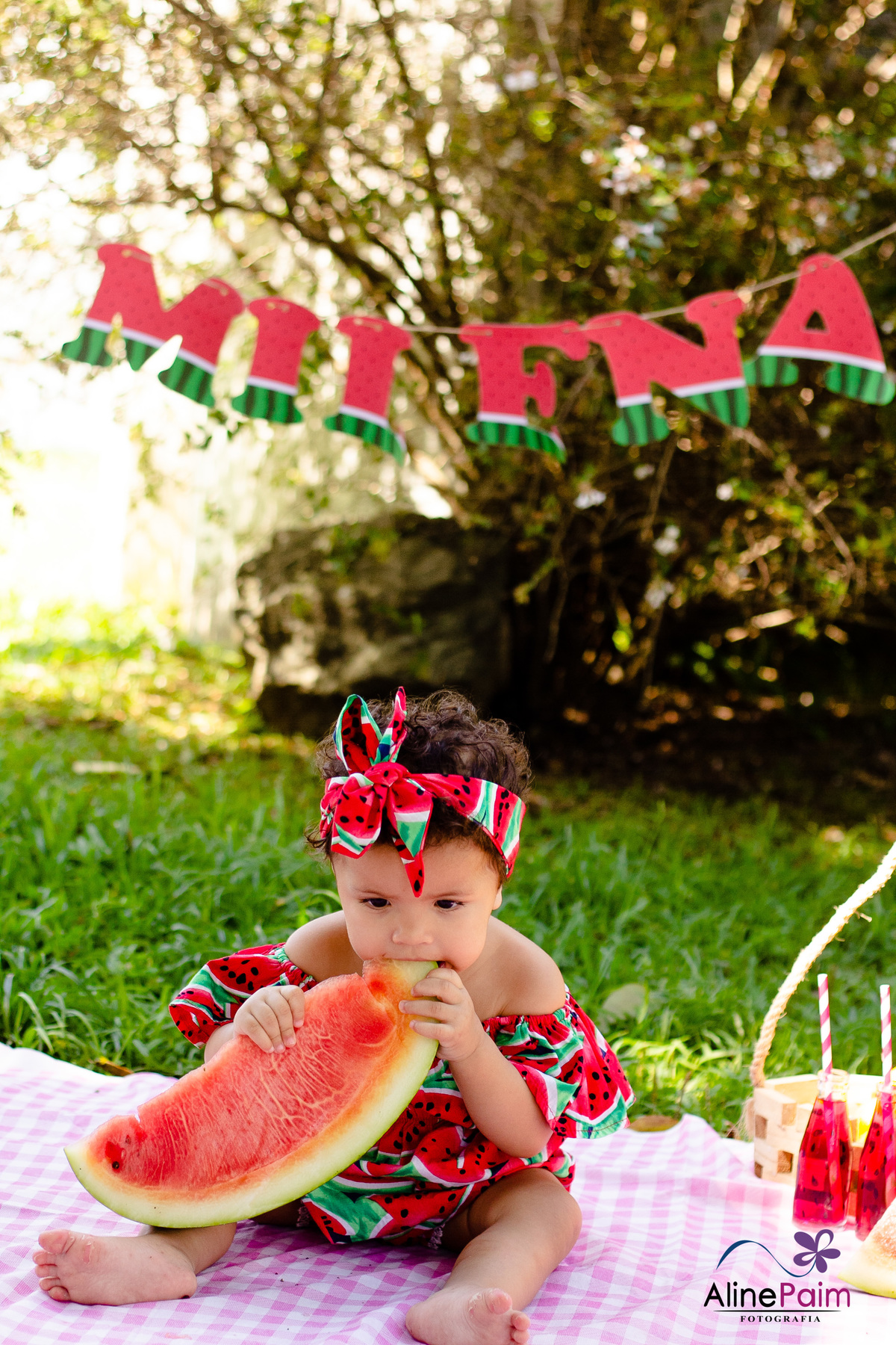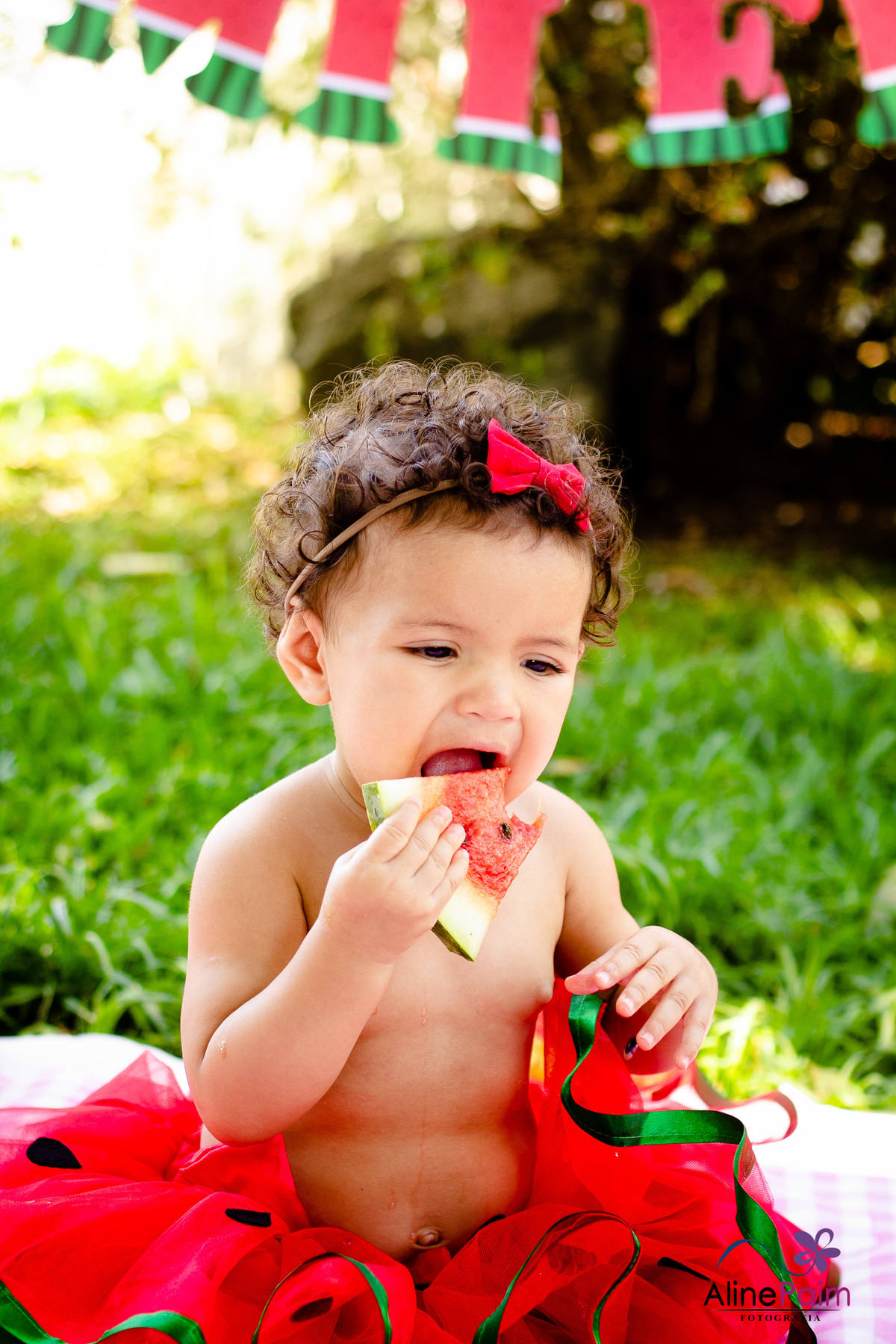 Para comemorar seu primeiro ano, fizemos este ensaio tão lindo aqui em São Bento do Sul, com muita melância e outras frutinhas que ela ama! Sem dúvida ela se divertiu e comeu muito :p
